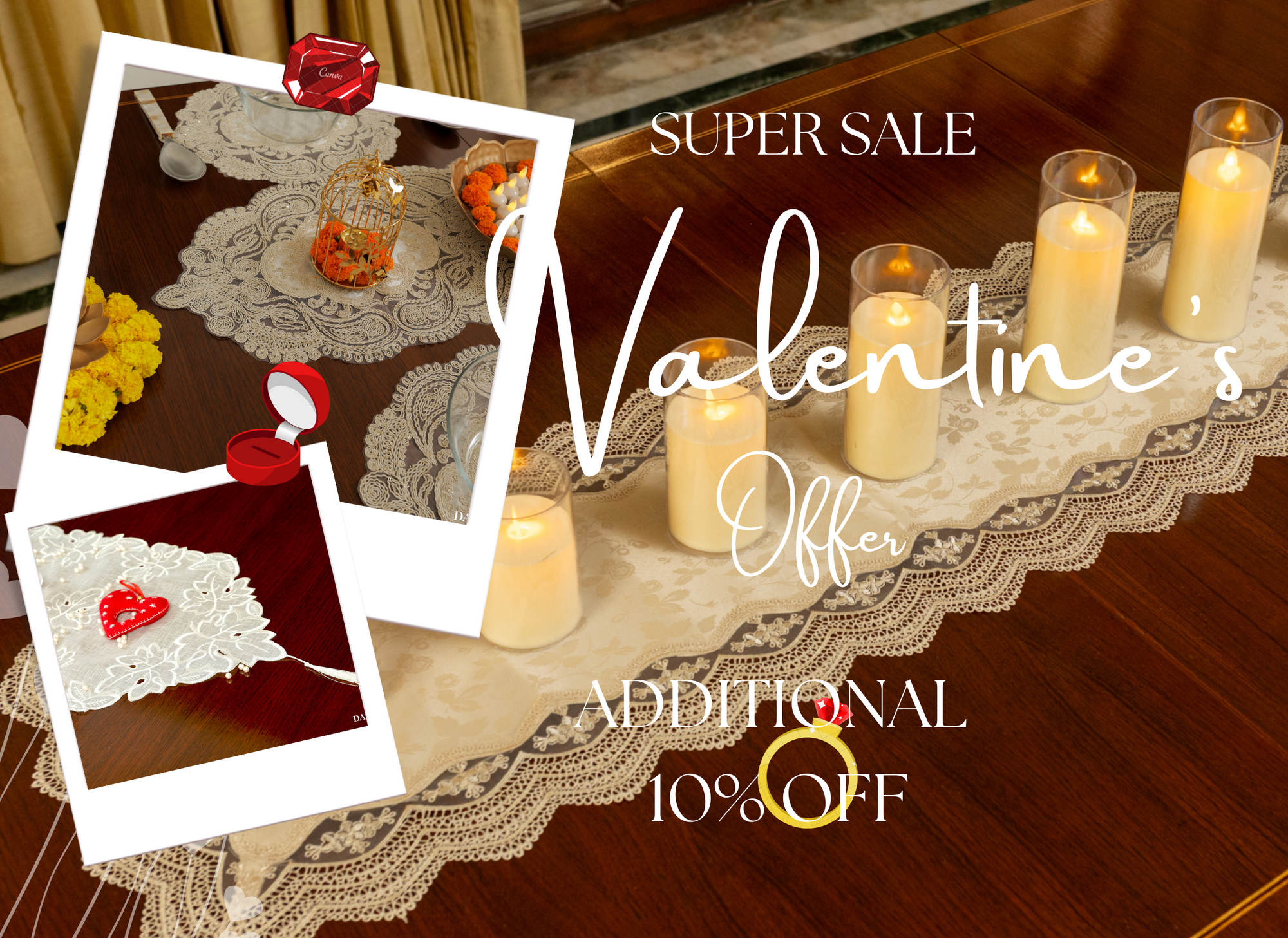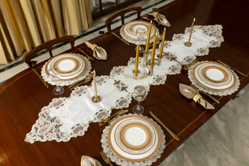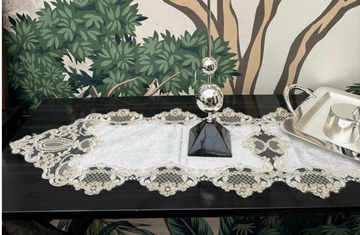 Indulge in our luxurious table linen which adds glamour to the surroundings. The combination of velvet lace and tinsel is perfect for the wine and dine look