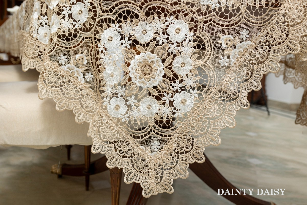 An unusual lace tablespread is always appealing adding character to the surroundings