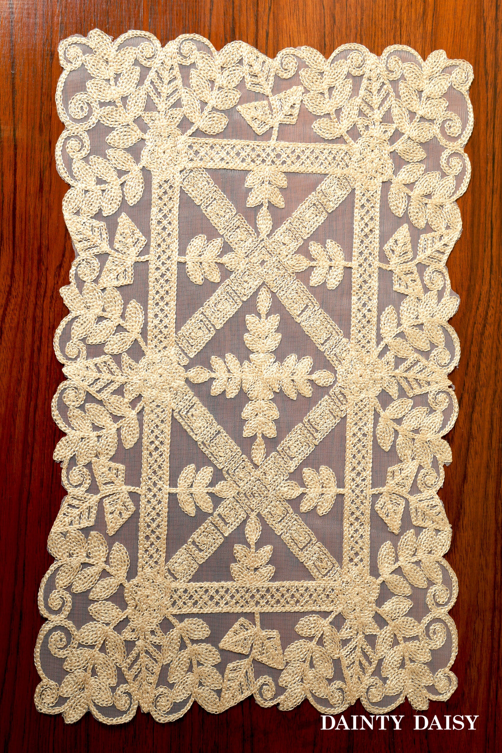 Enjoy elegant entertaining with Dainty Daisy’s pristine runners and placemats.