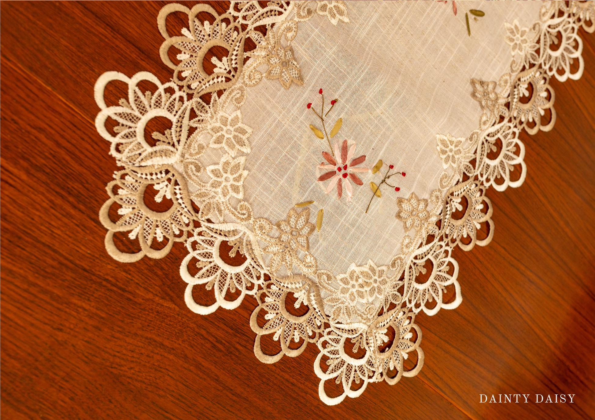 Timeless and versatile, the Hera runner complements any table setting with its classic appeal. A Dainty Daisy essential for the modern host.