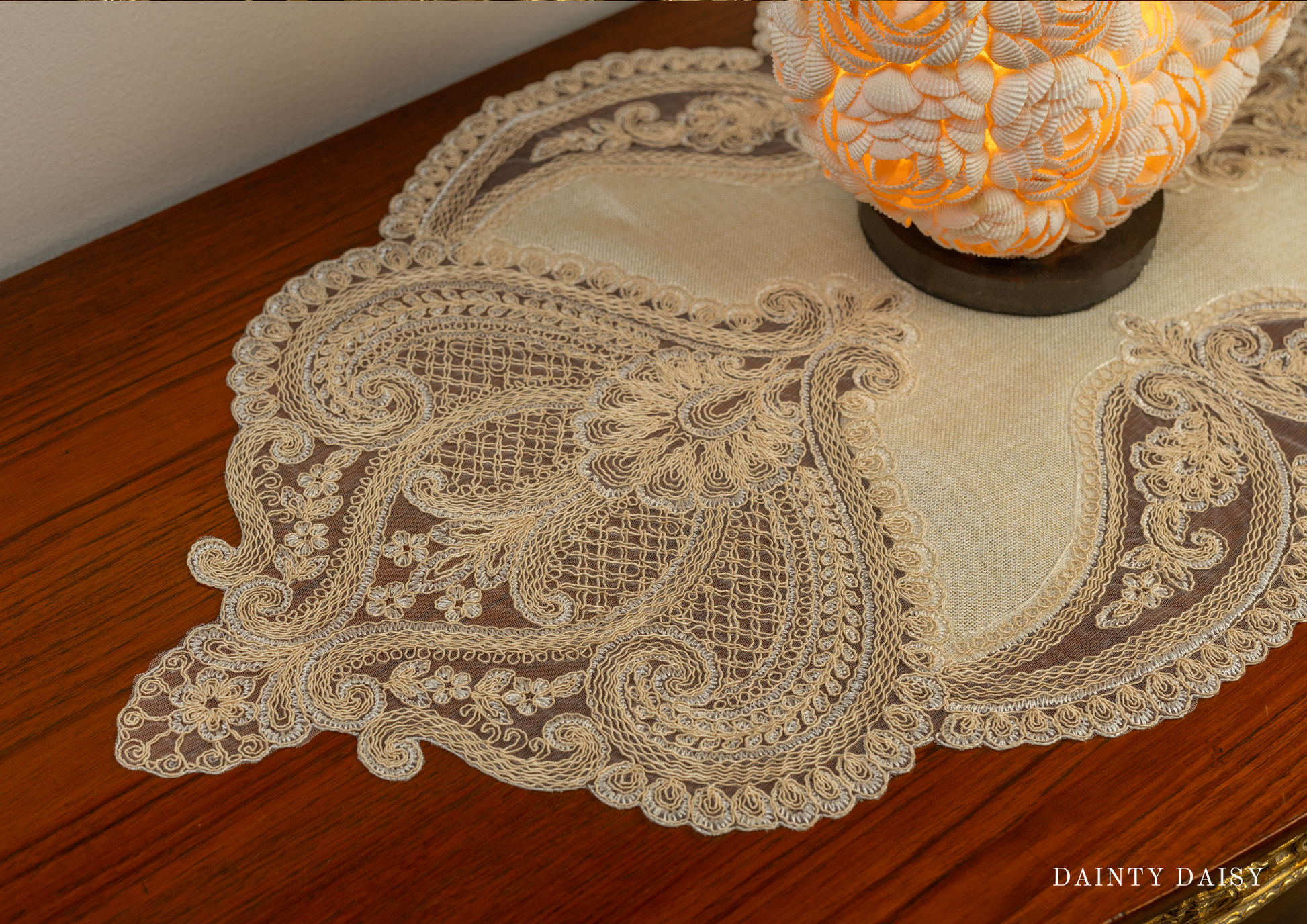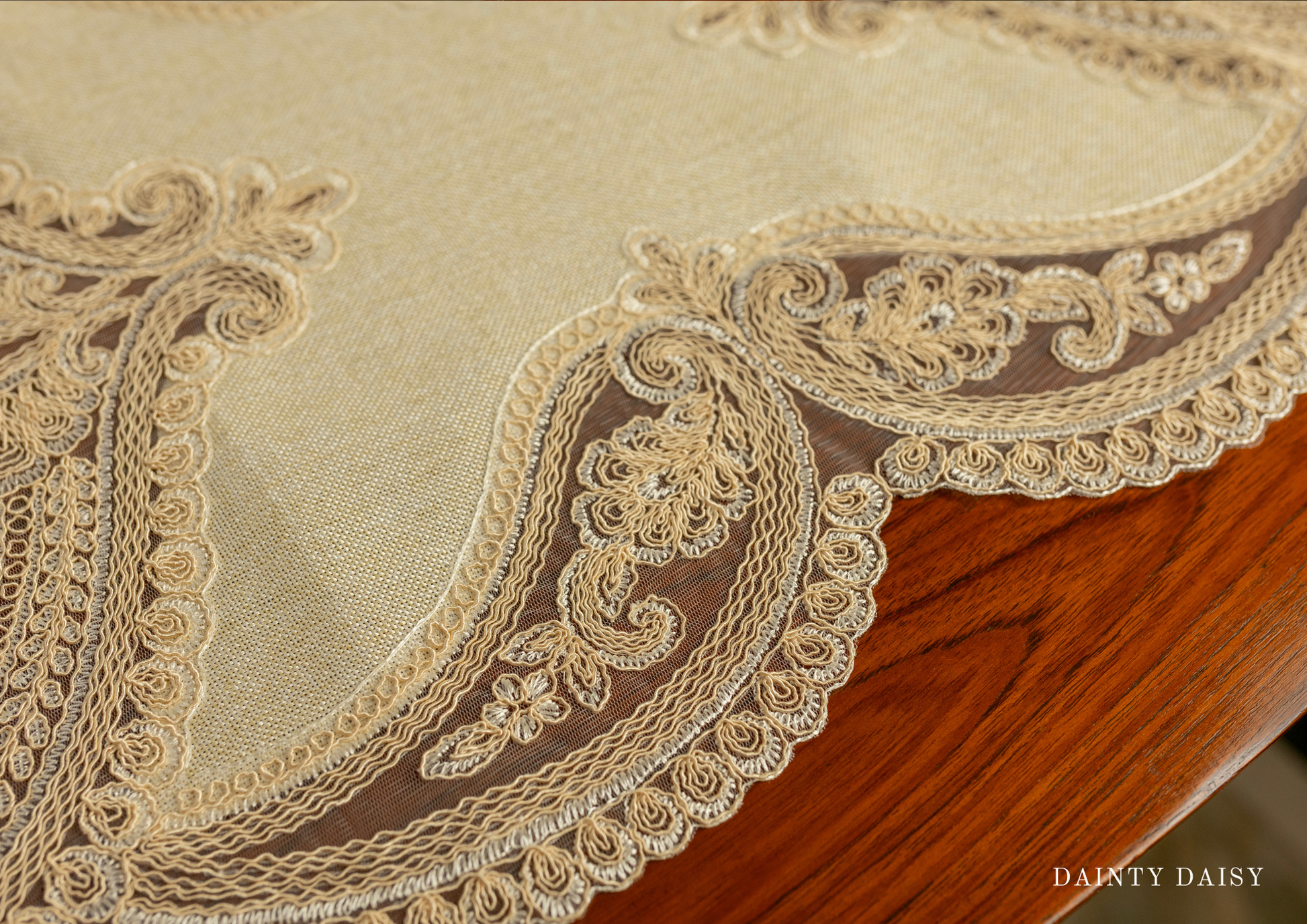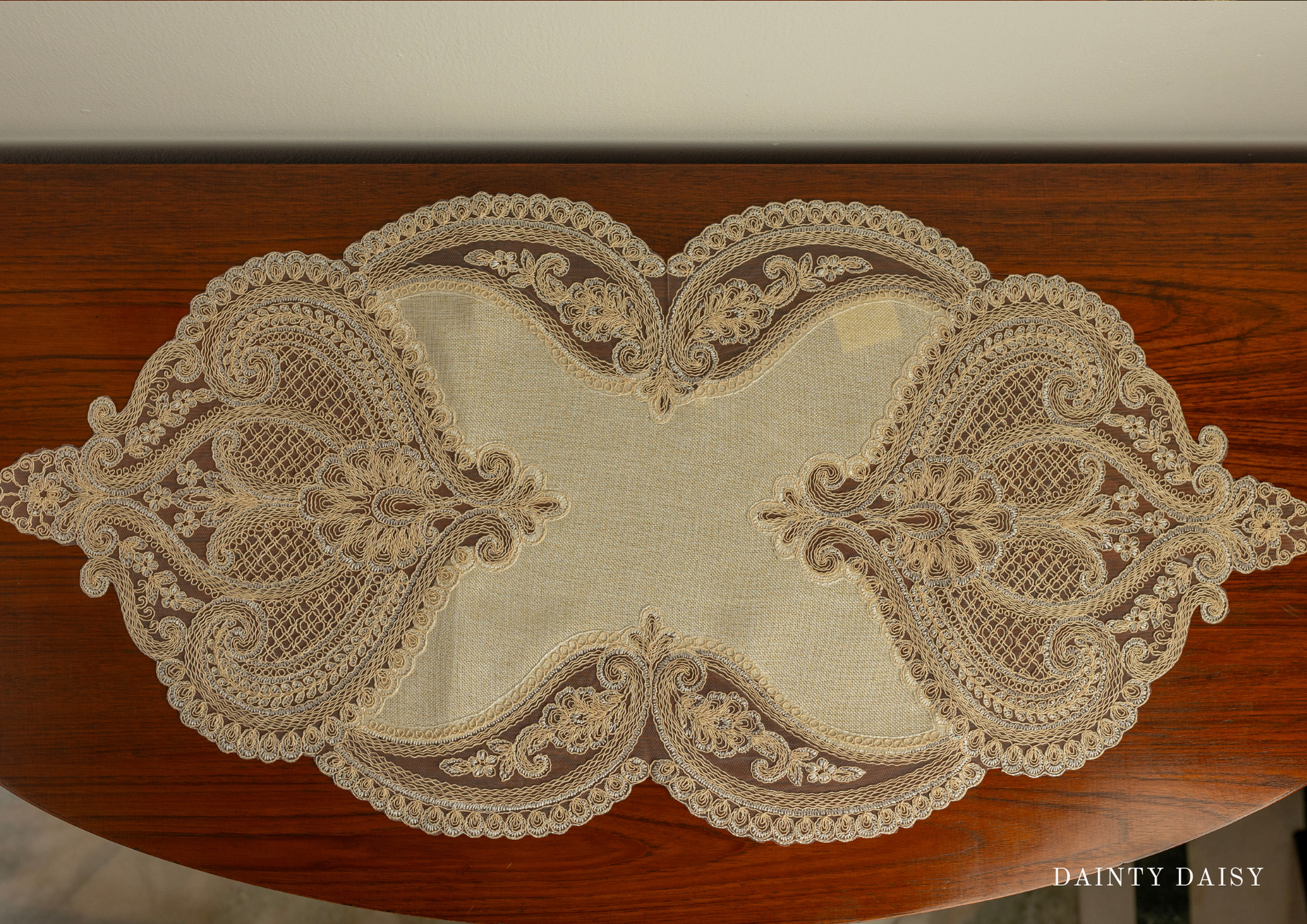 Subtle and sophisticated, the Iris runner adds a whisper of floral charm to your table. Dainty Daisy blends seamlessly with your finest linens.