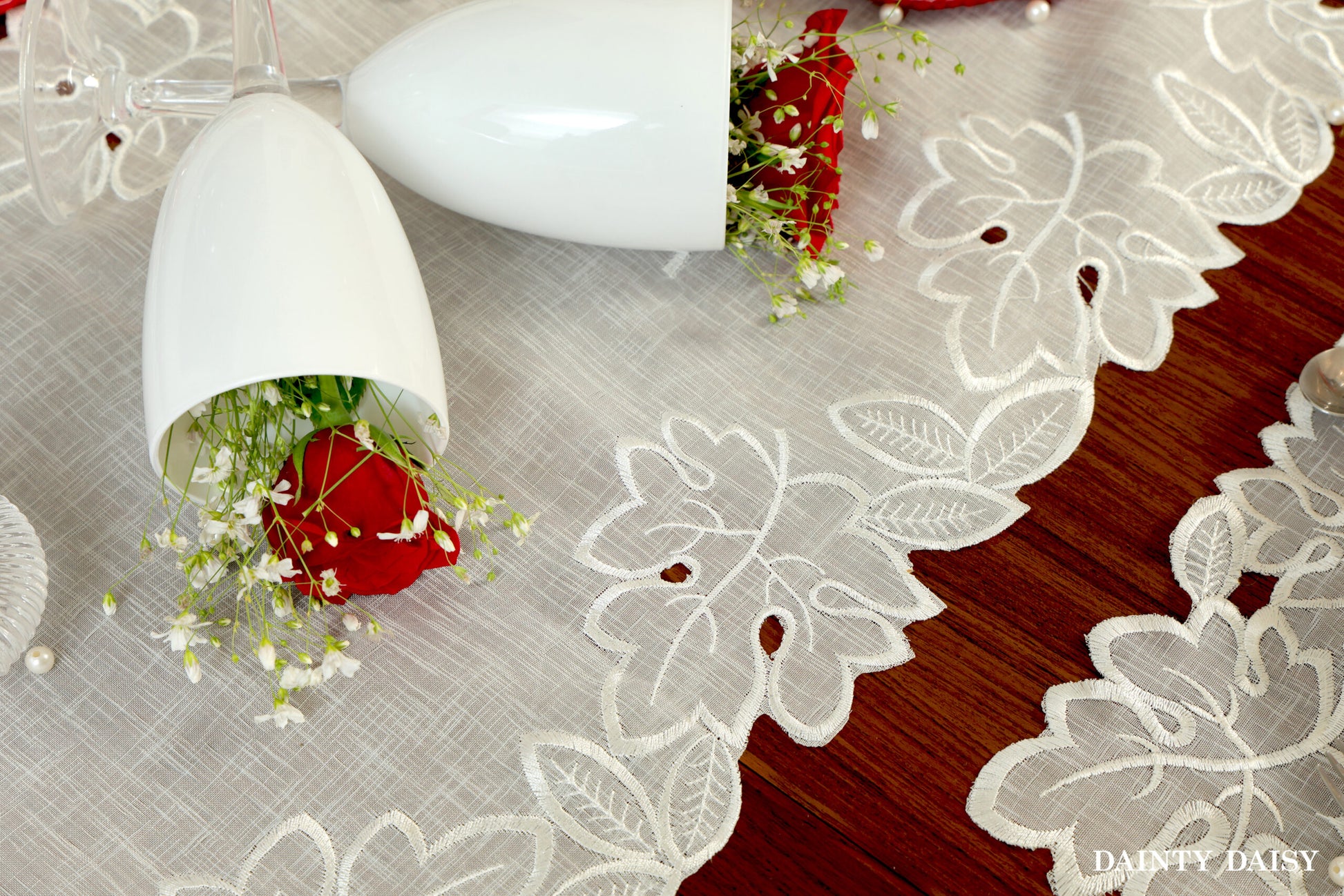 Maple Leaf White Table Runner 6 Feet