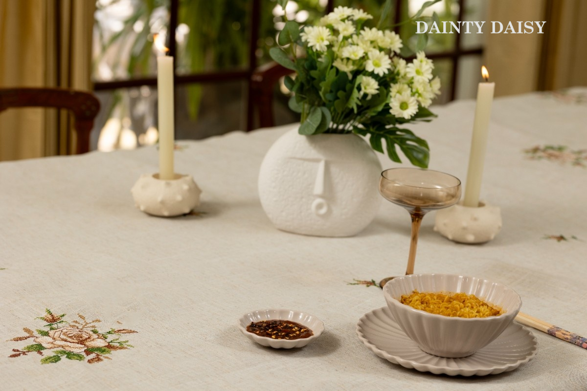 The art of cross stitch is evergreen and adds character to these tablespreads. Explore the different variations and colour options in this style.