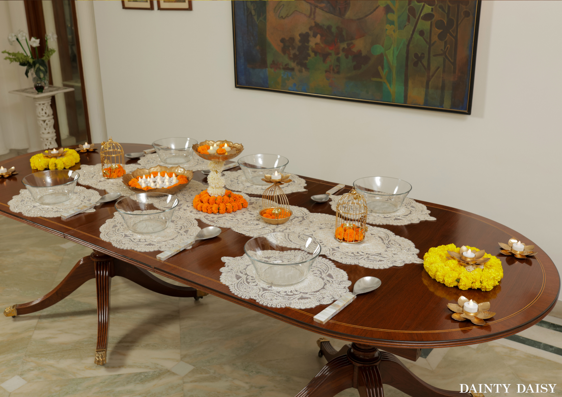 With its slightly larger size, the Selena placemat offers extra coverage and contemporary flair. Dainty Daisy designs for those who appreciate space and style.