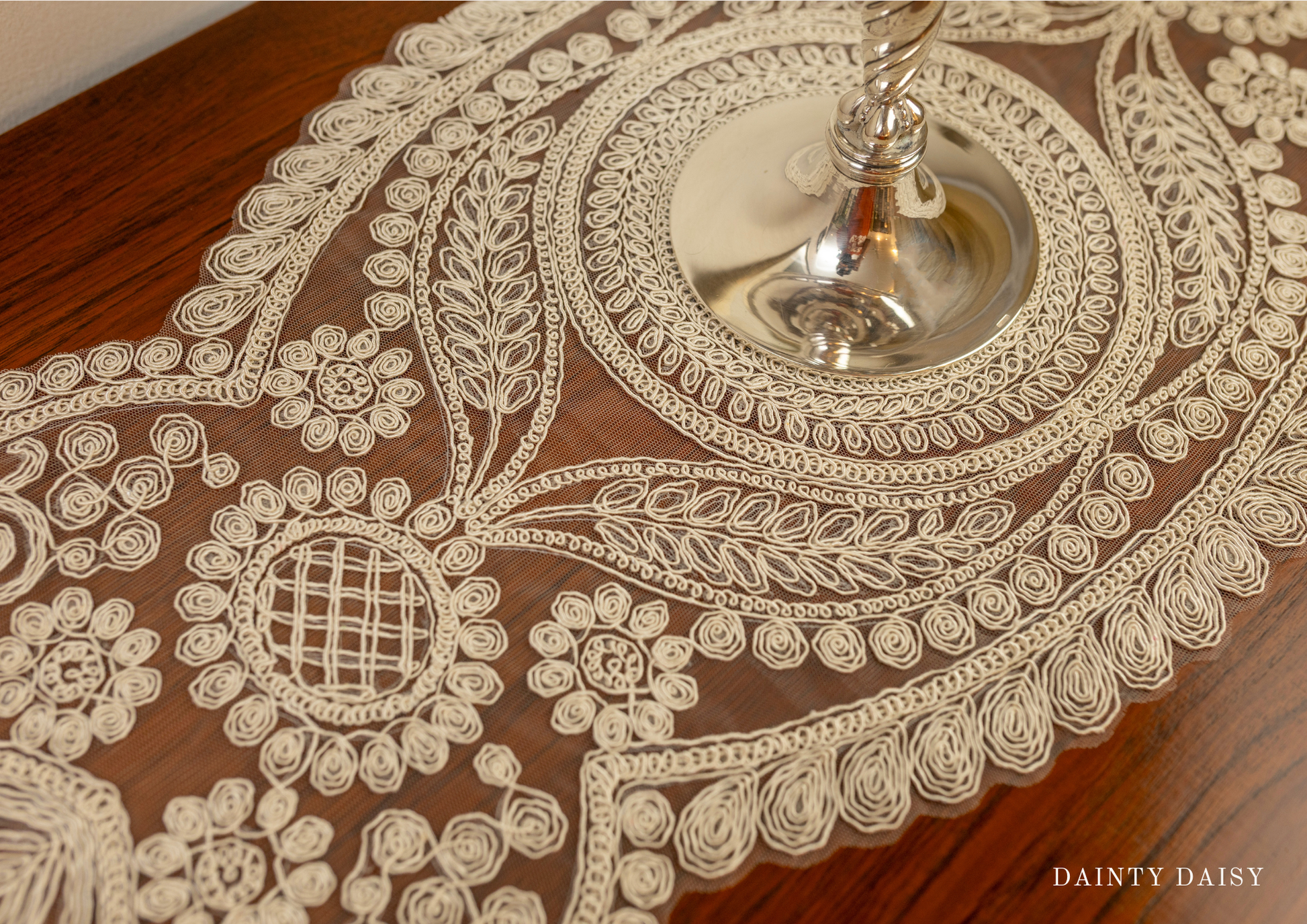 Make a statement with our Zeus runner—bold, protective, and undeniably elegant. Dainty Daisy ensures your table commands attention.